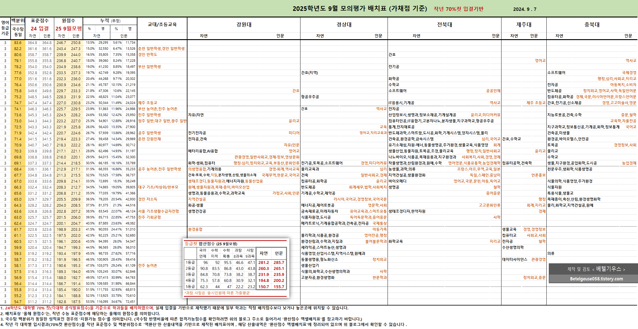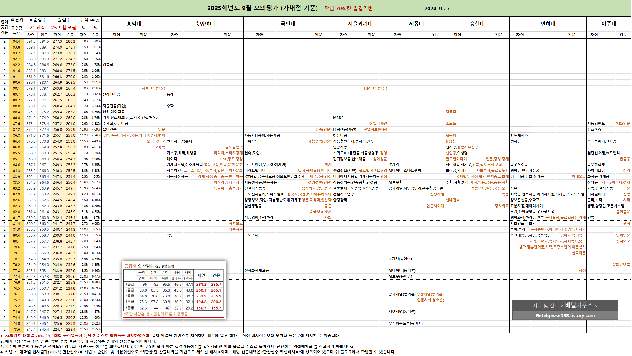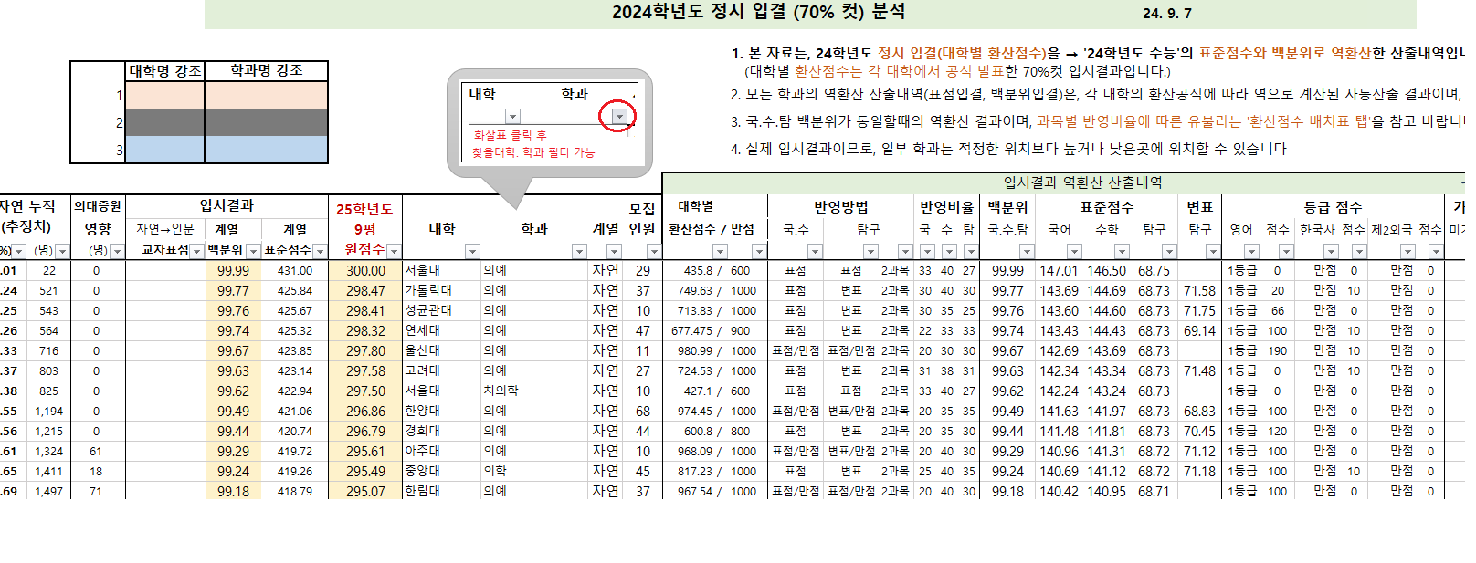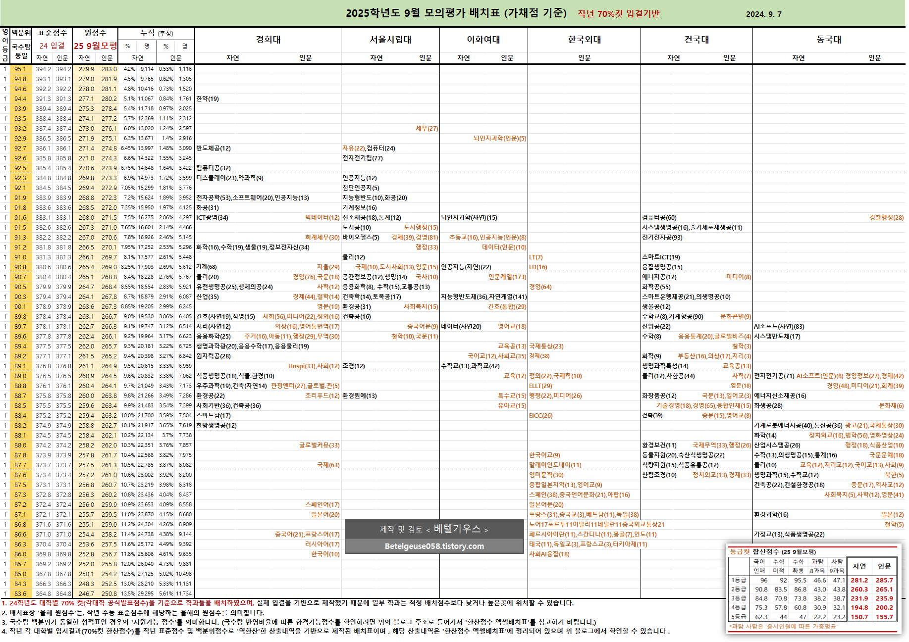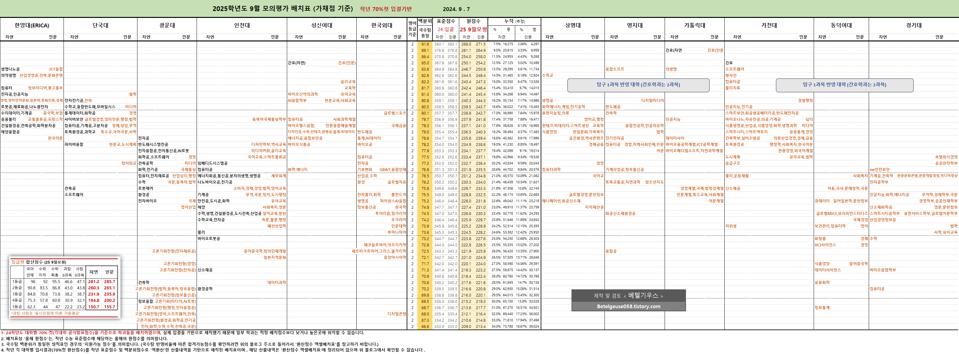 작년 각 대학에서 발표한 70%컷을 기반으로 제작되었습니다.