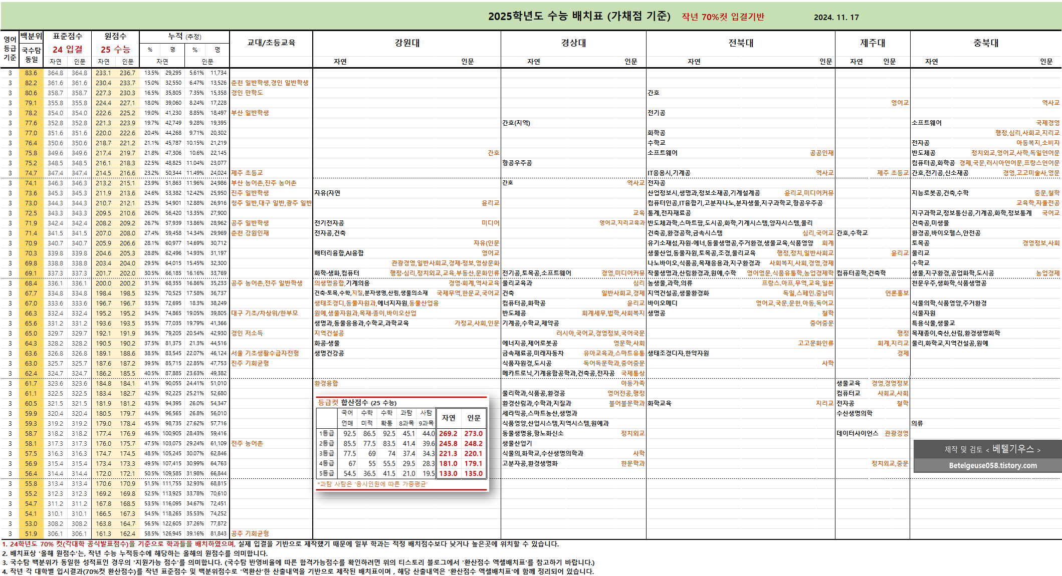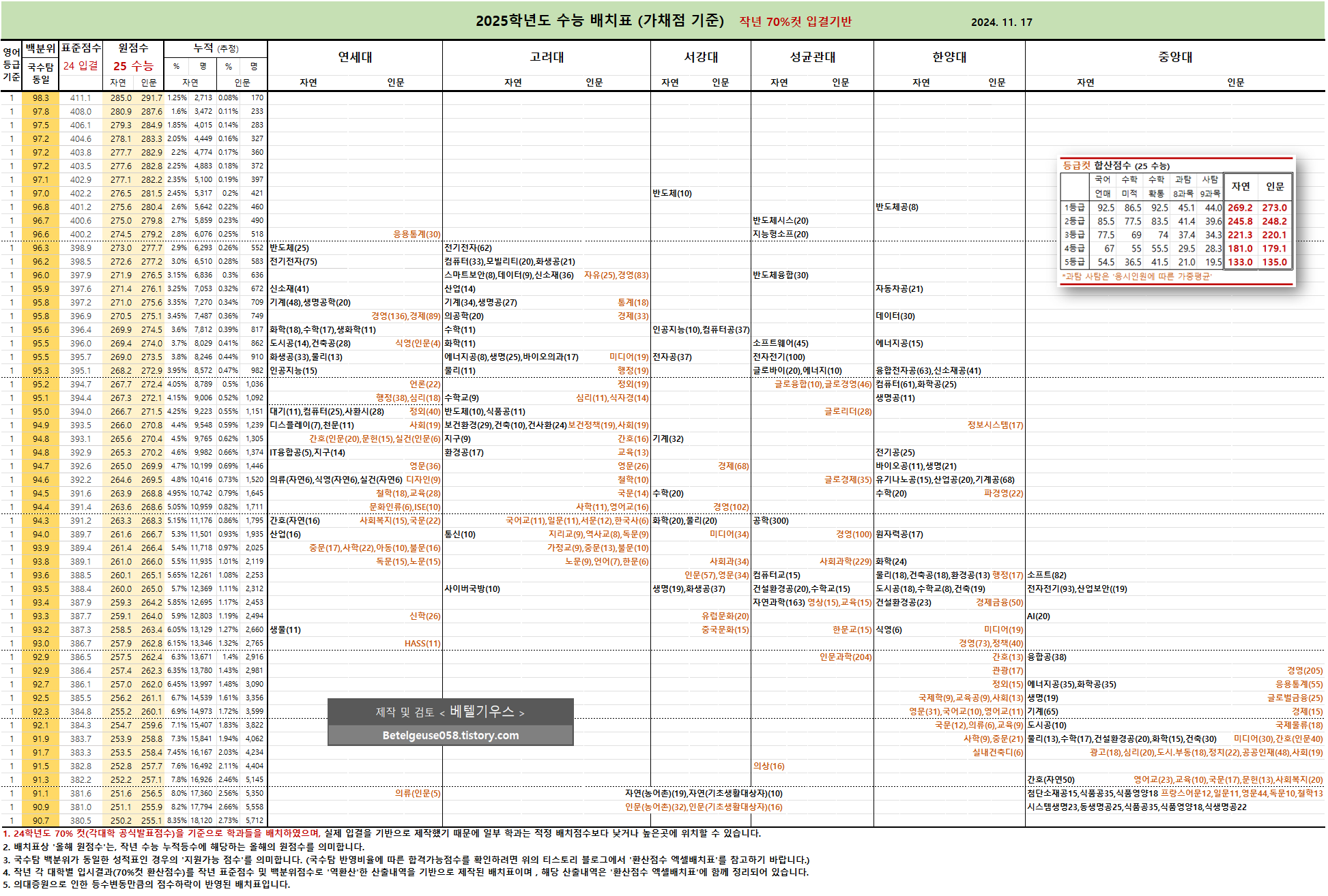 | 2025학년도 수능 배치표(실채점) (1) | 2024.12.12 |